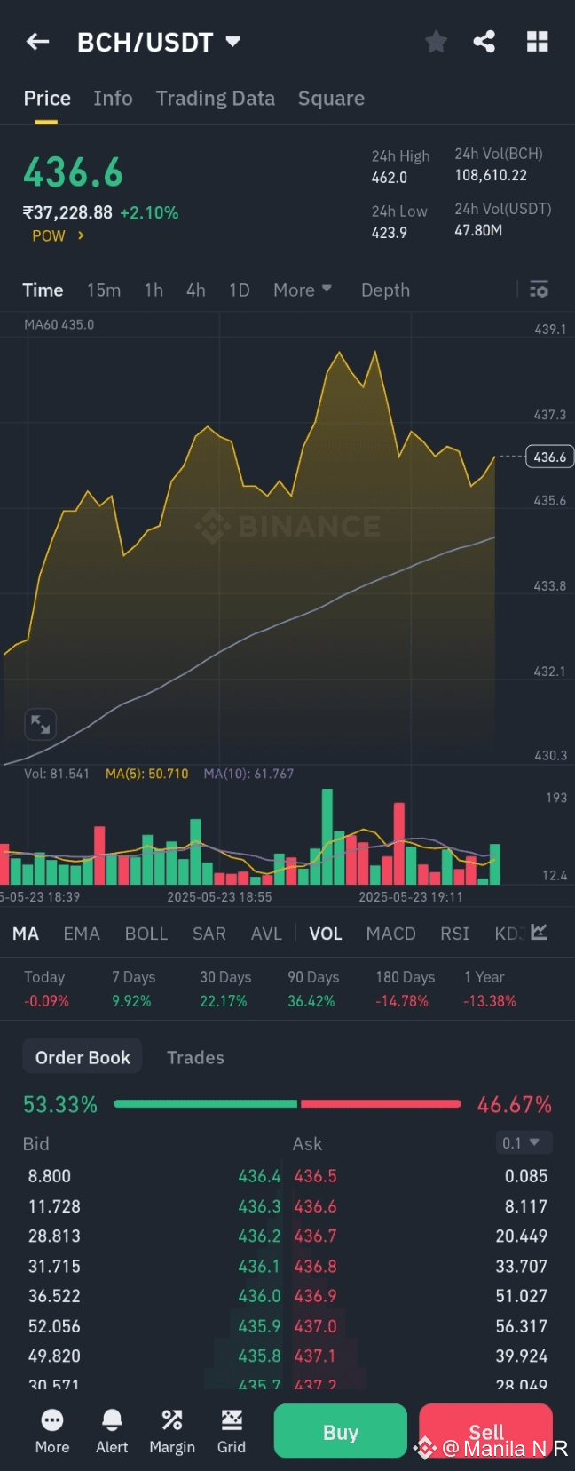 As of May 24, 2025, Bitcoin Cash (BCH) is trading at $440.94 USDT , with an intraday high of $454.07 and a low of $428.67.
