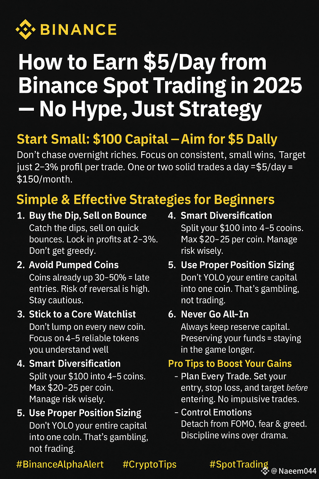 Don’t jump on every new coin. Focus on 4–5 reliable tokens you understand well.