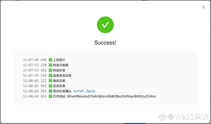 任务开始执行时,会出现日志弹框为您实时更新进度。交易成功后,会为您提供交易链接和代币链接,点击可直接查看