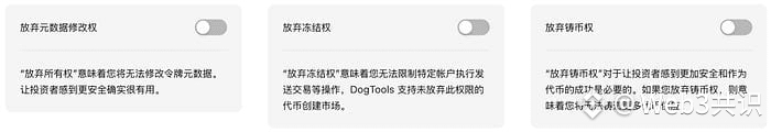 【(可选) 设置权限】:一般情况下,在需要在 Raydium 添加的代币需要放弃冻结和铸币权限,元数据修改权限可以自行选择,如果放弃元数据权限,那么代币名称和logo将不能更新。