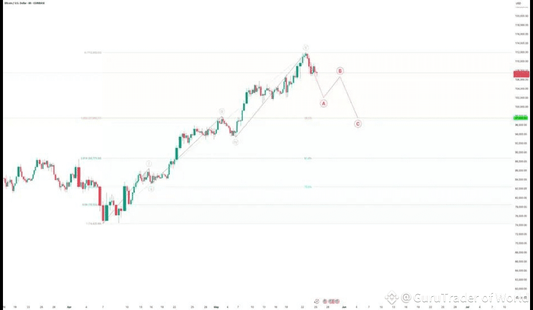 🔁 Wave B ~$106,000 Possible lower high bounce