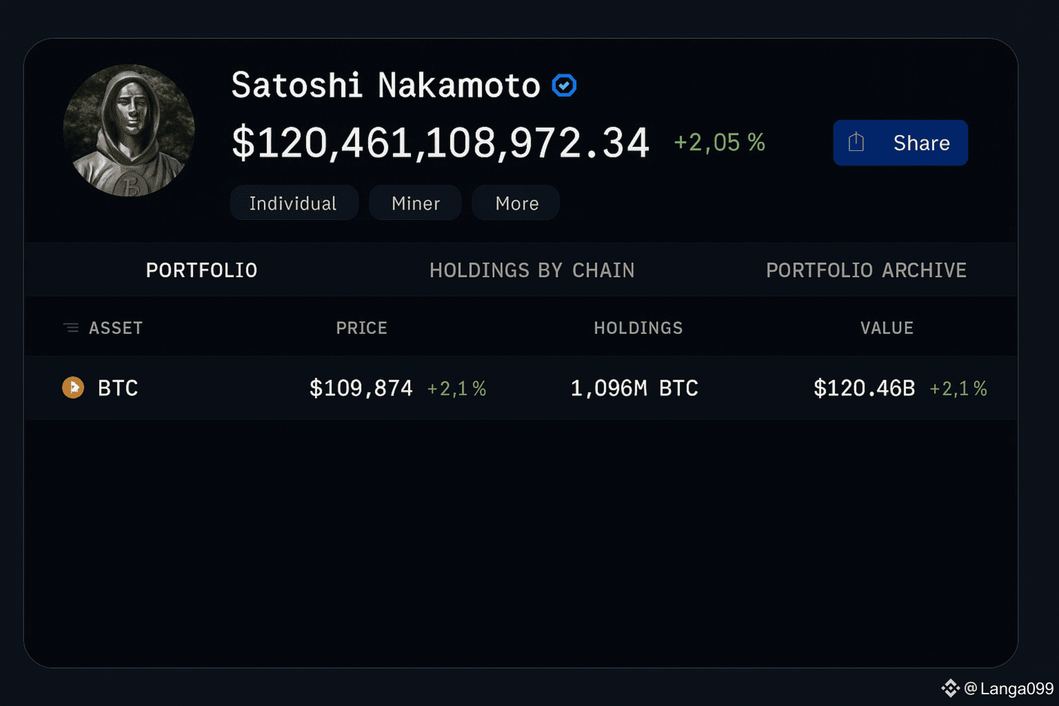 Você piscou... e o portfólio adormecido de Satoshi Nakamoto ultrapassou a marca de $120 BILHÕES de dólares!😳💸