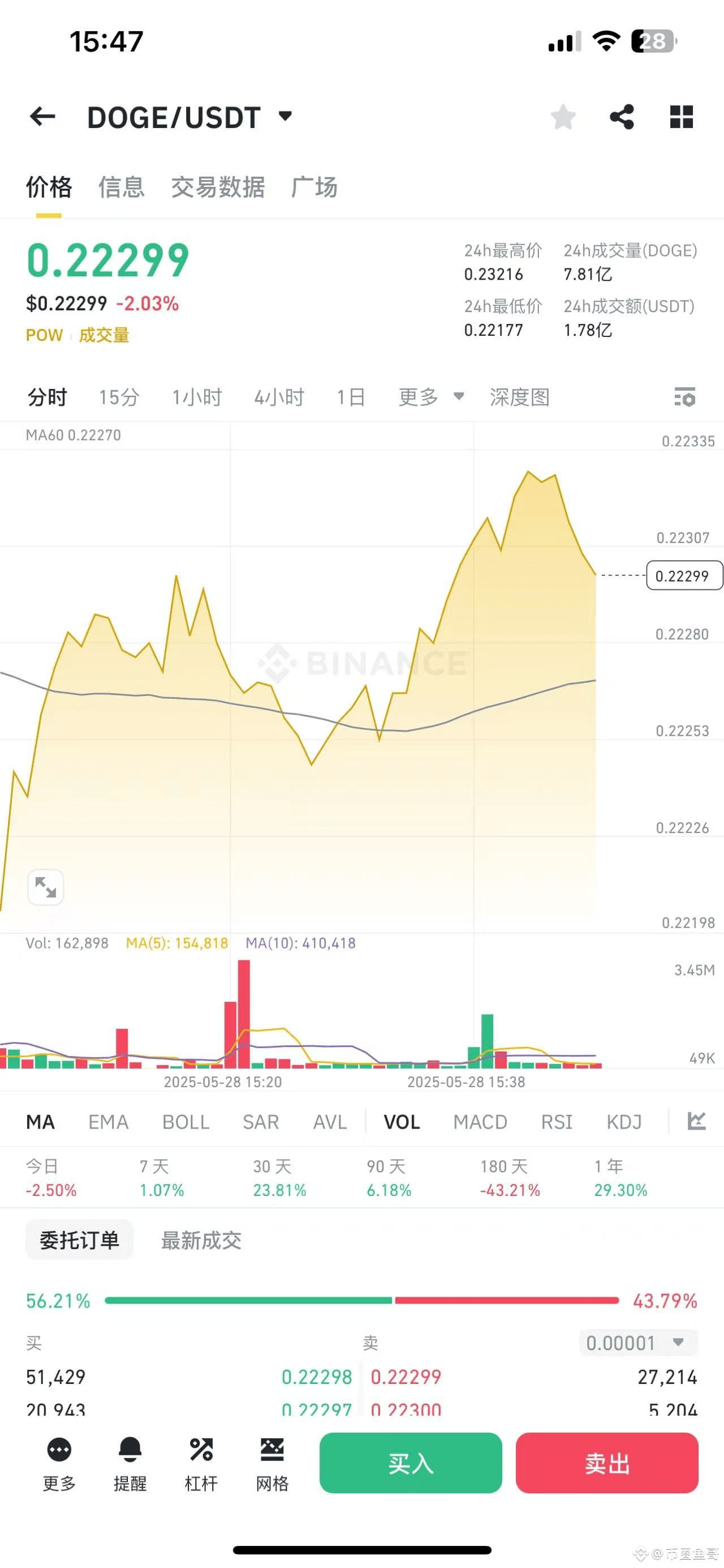 老铁们注意了!狗狗币(DOGE)最近又双叒叕搞事情了!截至2025年5月27日,DOGE价格在0.22美元附近晃悠,24小时微涨1.49%,过去一个月更是狂飙21%。但圈内人都在问:月底前到底能不能突破前高?