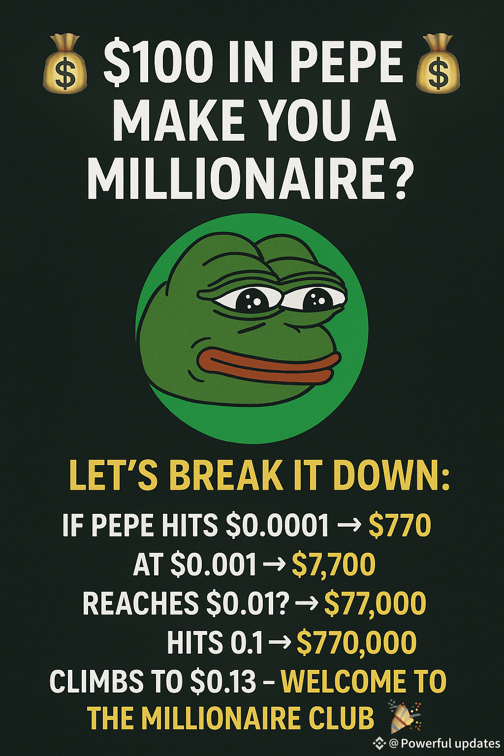 Hits $0.13 → You’re officially a crypto millionaire 🎉
