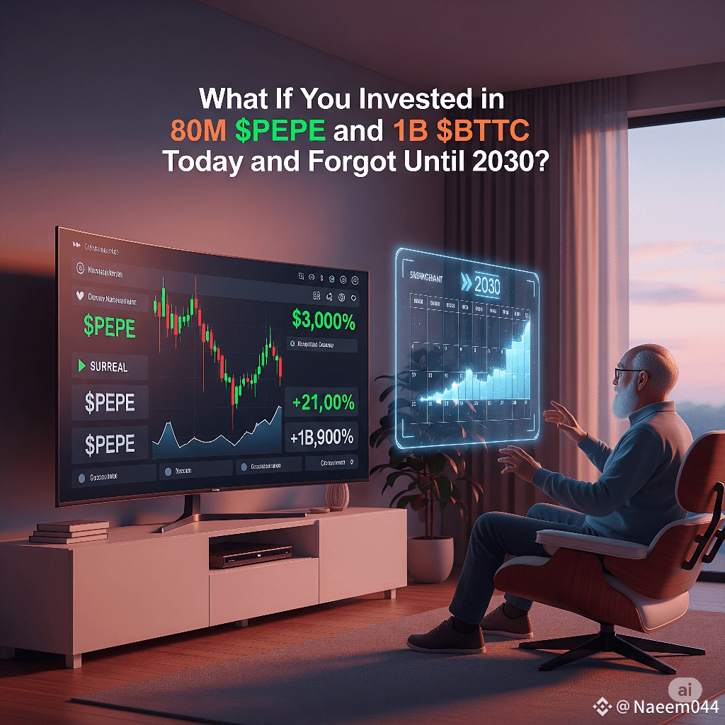 The crypto market is full of speculative opportunities — often driven by narratives, communities, and the ever-changing tides of sentiment. Two tokens that epitomize this are $PEPE, a memecoin inspired by internet culture, and $BTTC (BitTorrent Token), a utility token tied to decentralized file sharing and Web3 infrastructure. But what if you invested in both today and simply walked away, checking your portfolio again only in 2030?