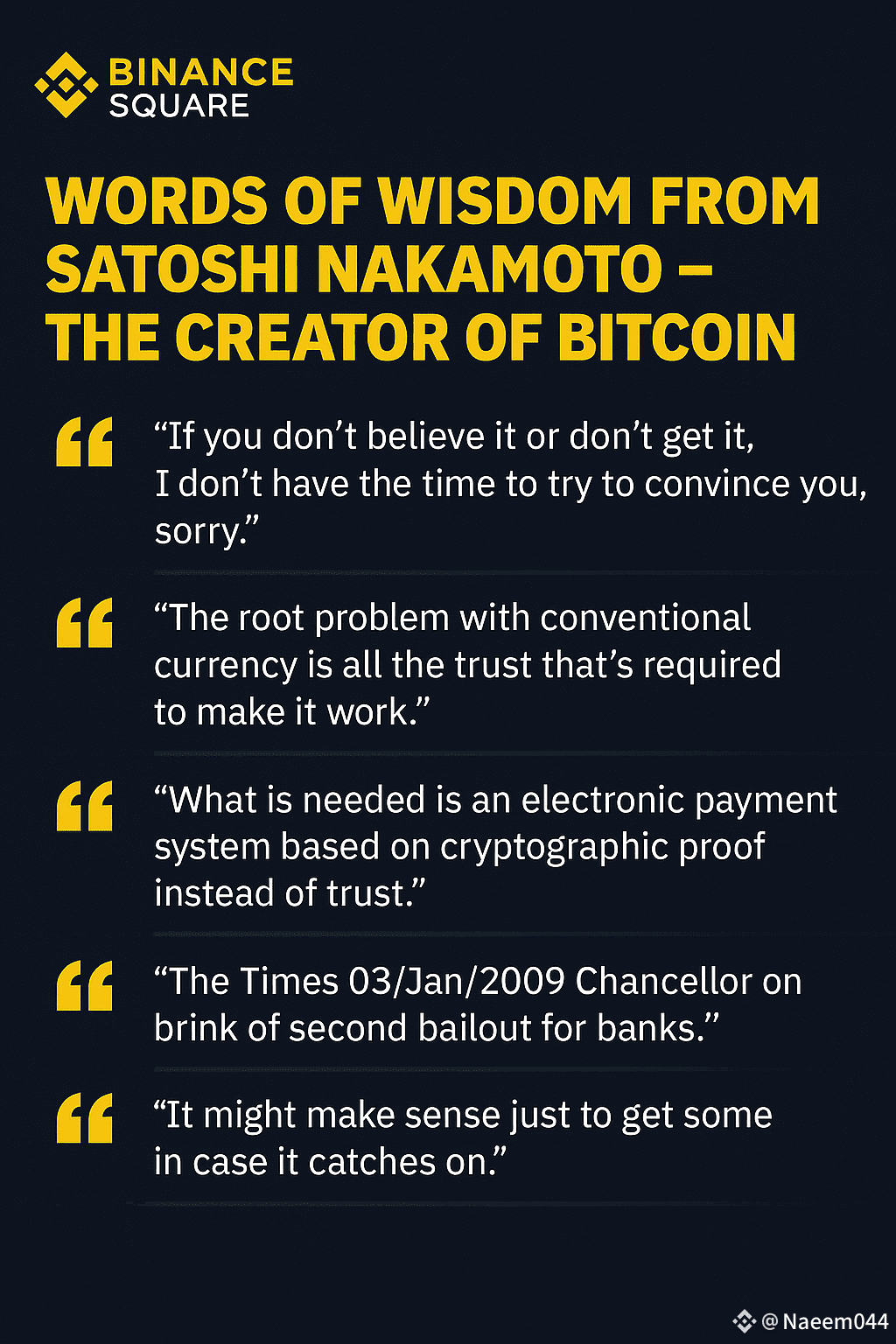 #Bitcoin #SatoshiNakamoto #CryptoWisdom #BinanceSquare #BTC #Decentralization #CryptoQuotes