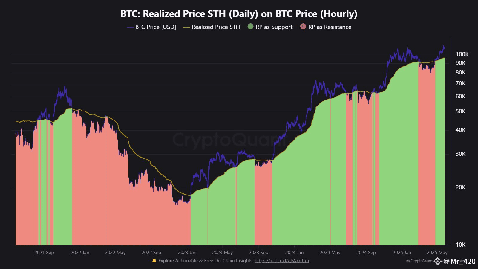 A few different variations of this metric exist, with the one shown below being the Realized Price specifically for the short-term holders.