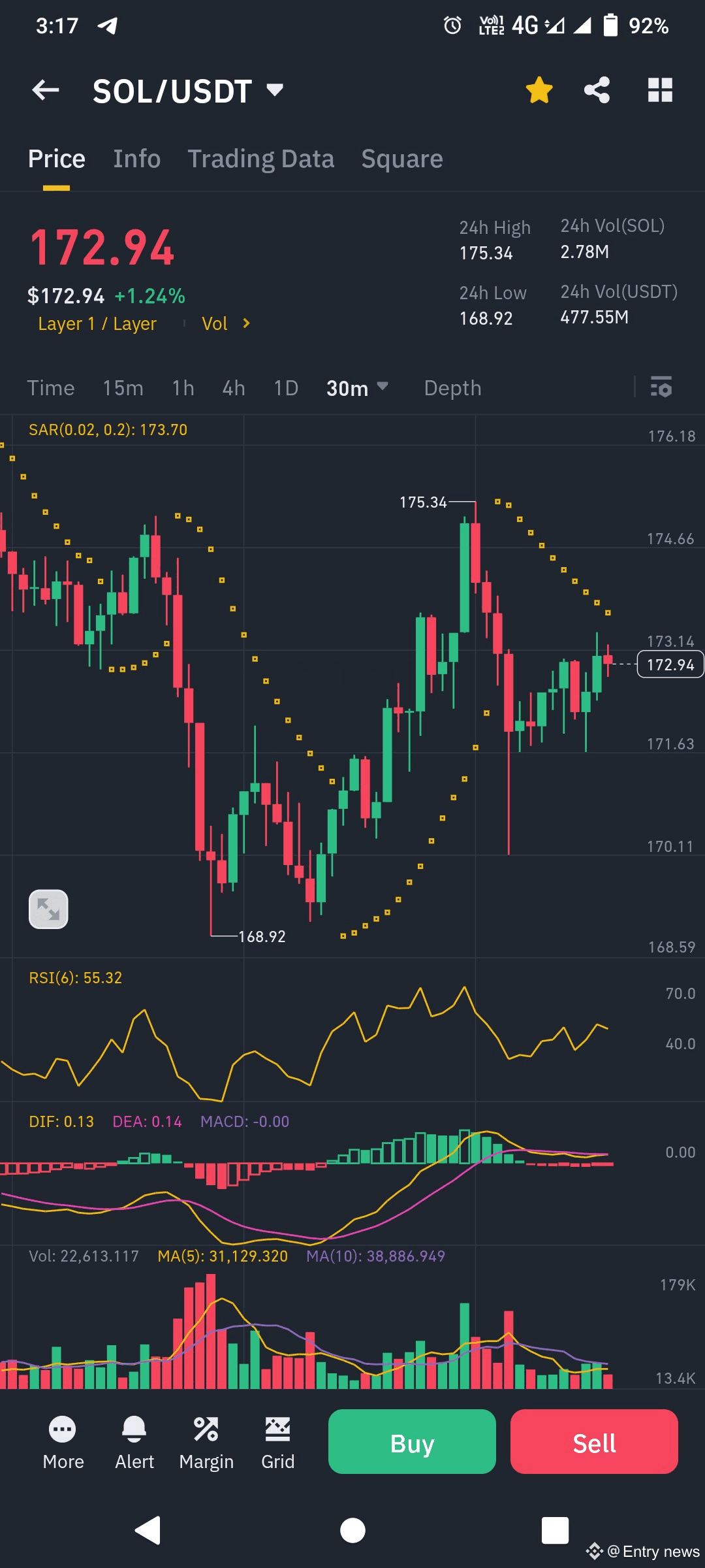 Watch for continued price action below $173.70 (SAR level) for potential short opportunities.