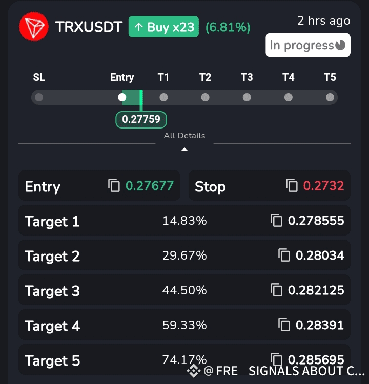 Aaj maine TRXUSDT ke liye aik strong aur calculated buy signal share kiya hai, jo market ke halat aur price action ko madde nazar rakhte hue tayar kiya gaya hai. Entry price 0.27677 rakhi gayi hai – jo aik achi technical support level par mabni hai, jab ke stop-loss 0.2732 par set kiya gaya hai taake risk minimum ho.