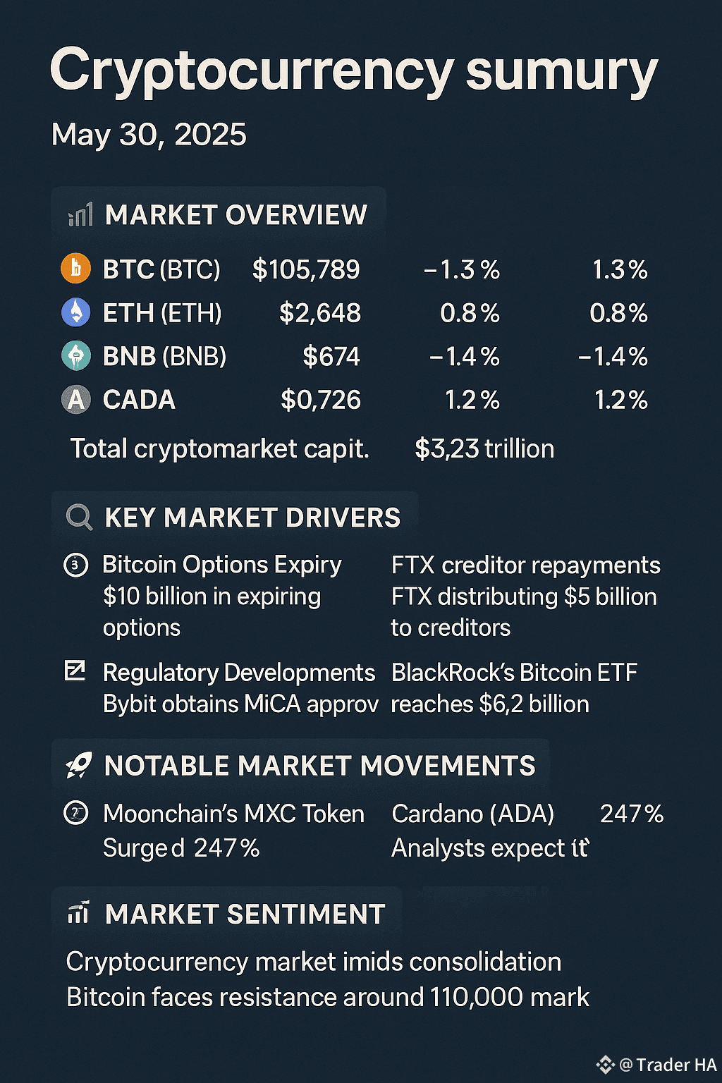Bitcoin ($BTC ): Trading around $105,789, down approximately 1.3% over the past 24 hours.