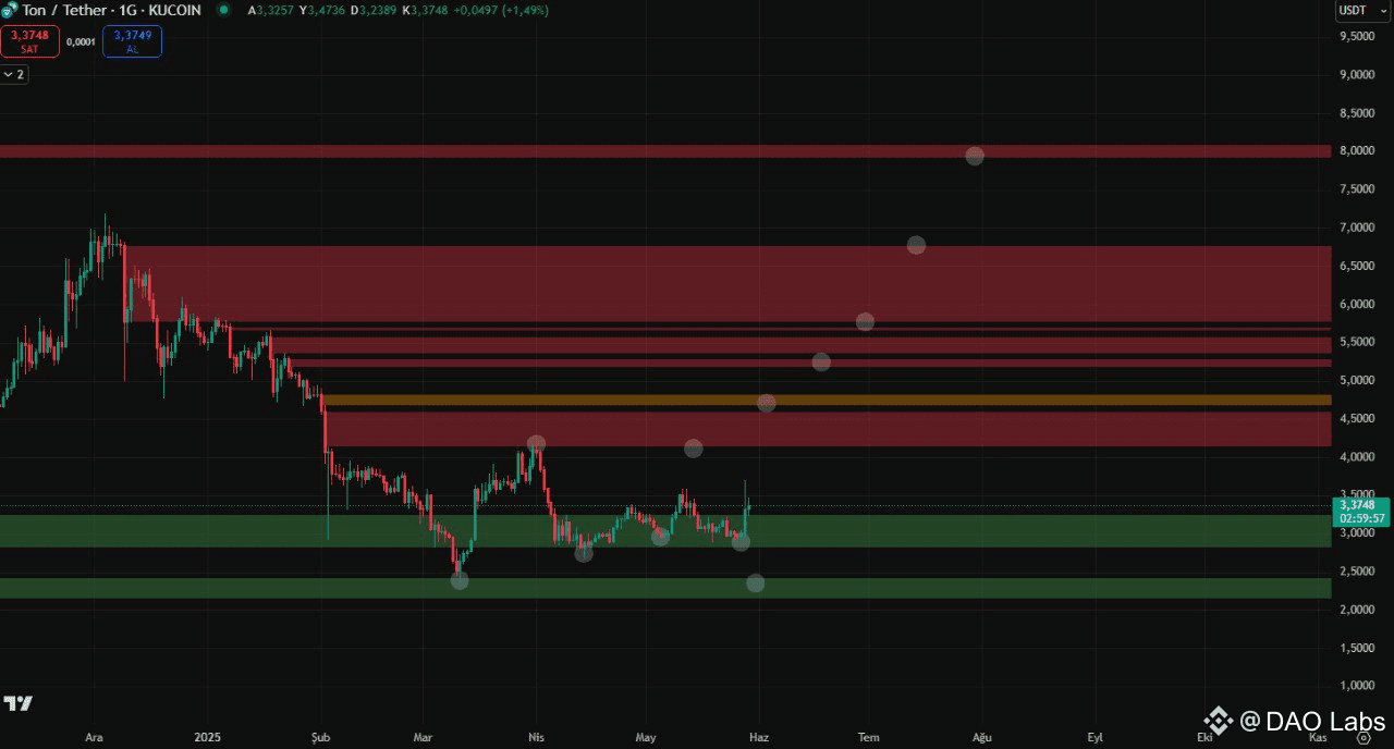 $TON has recovered from its lows as we forecasted and is now working to return to a strong trend. @Ton Network ’s recent movement, observed through the lens of #DAOLabs and #SocialMining , highlights an instructive response to both technical and macro drivers.