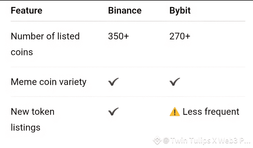 Both Binance and Bybit support a wide range of cryptocurrencies, but Binance offers significantly more options, especially for new tokens and low-cap gems.