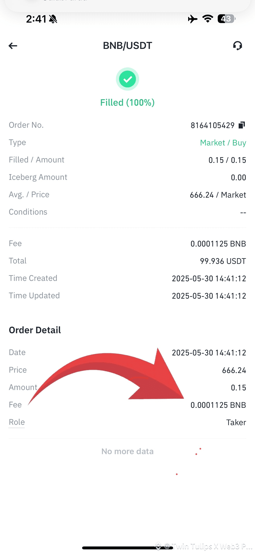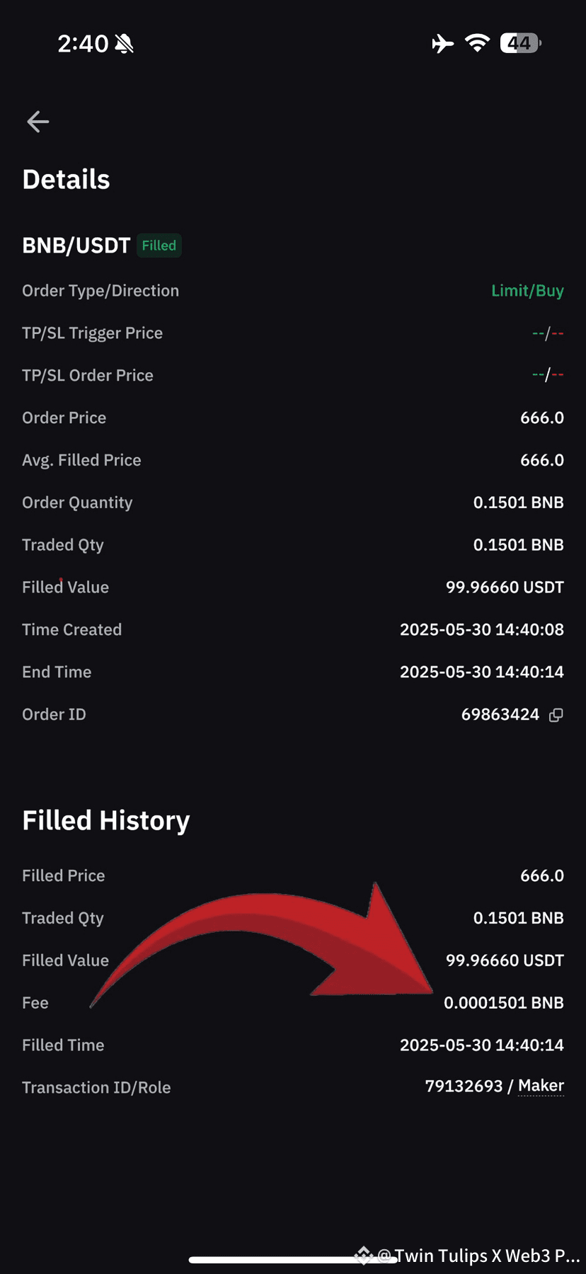 To test both exchanges fairly, I used ~$100 USDT on each platform to buy BNB/USDT. Here’s what happened: