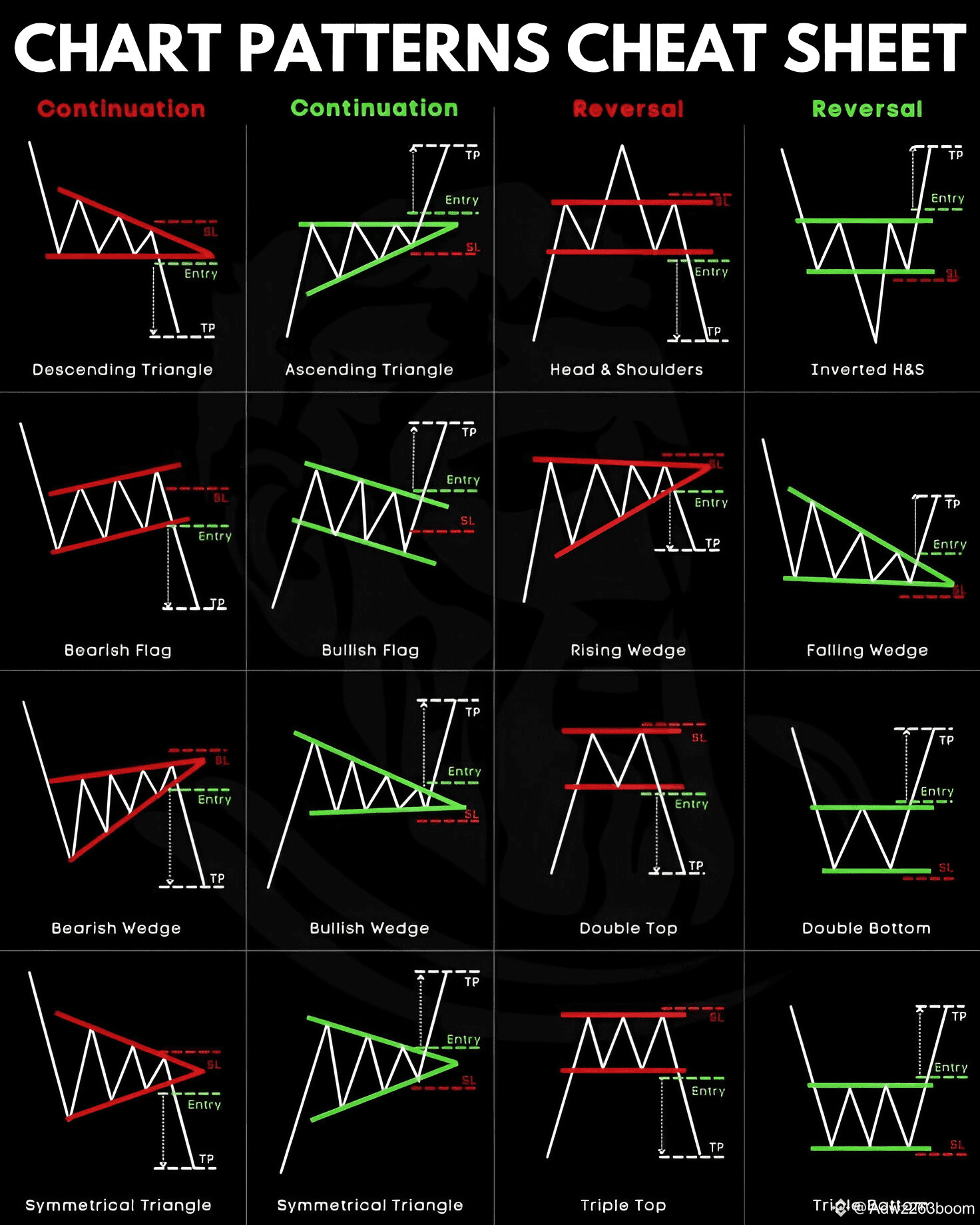 Esta HOJA DE TRUCOS de Patrones de Gráfico ÉPICA cambiará tu juego de trading 180°. Ya seas principiante o un trader experimentado, dominar estos 12 patrones puede ponerte en el camino hacia ganancias consistentes! 💰