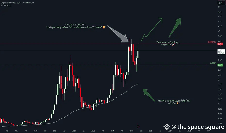 🔥 The crypto market cap is challenging its final boss — the $3.48T resistance.