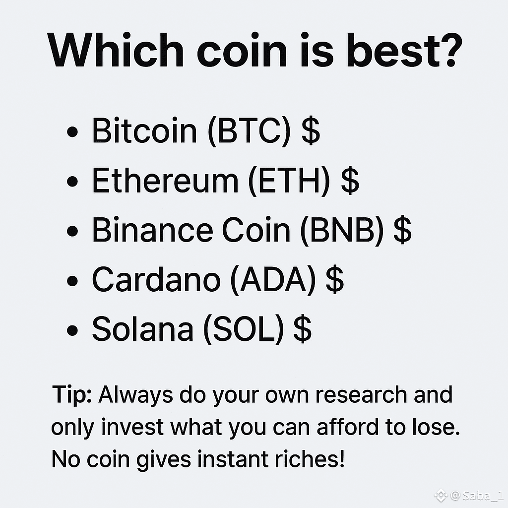 Cardano (ADA) $ — Strong tech, eco-friendly.