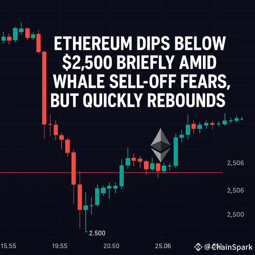 Ethereum Dips Below $2,500 Briefly Amid Whale Sell-Off Fears, But Quickly Rebounds