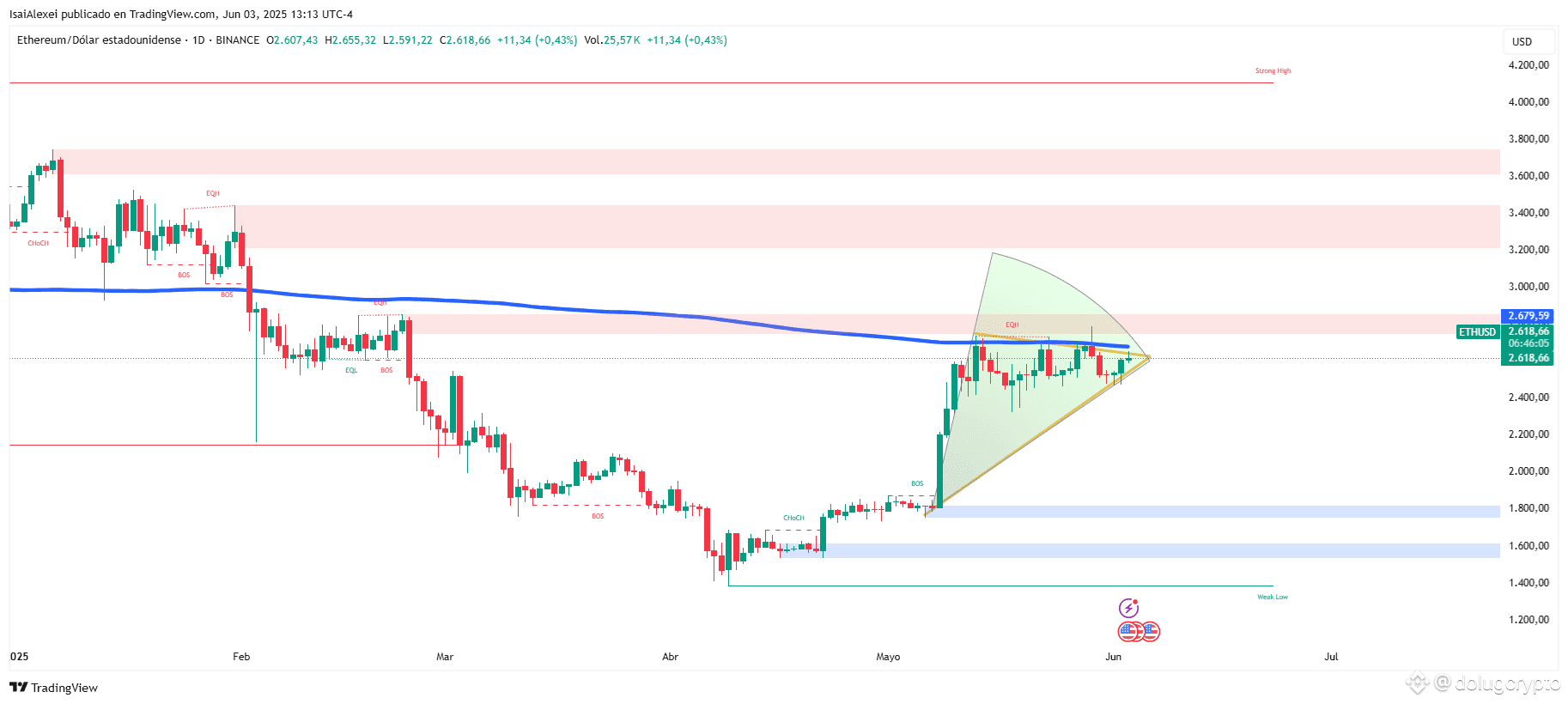 • Nếu ETH phá vỡ vùng kháng cự 2.700 USD, khả năng cao sẽ hướng tới mục tiêu tiếp theo trên 3.000 USD – mức tâm lý quan trọng.