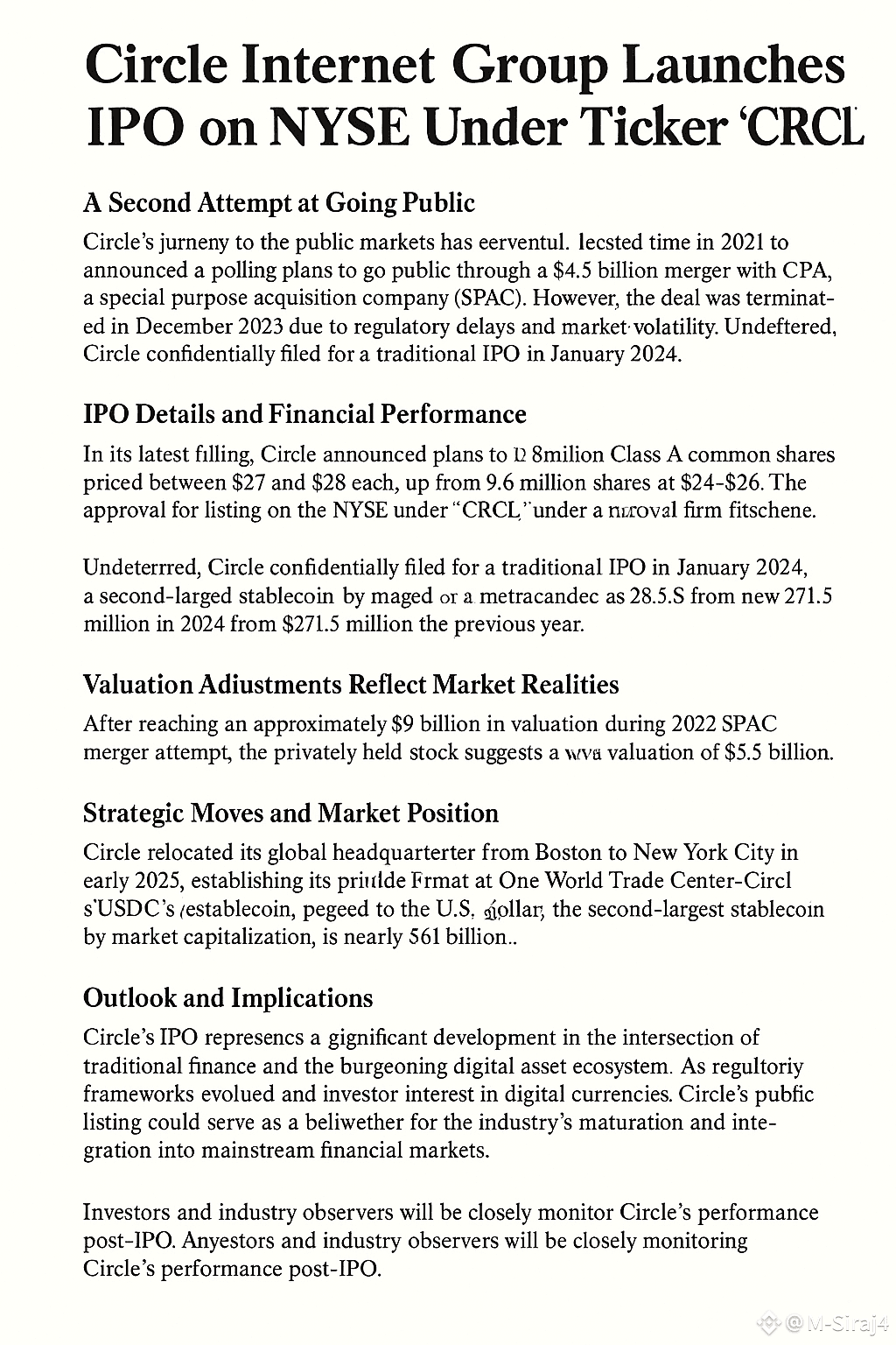 Circle Internet Group, the fintech company behind the USDC stablecoin, has officially launched its initial public offering (IPO) on the New York Stock Exchange under the ticker symbol "CRCL." This move marks a significant milestone for the company, aiming to solidify its position in the evolving digital finance landscape.