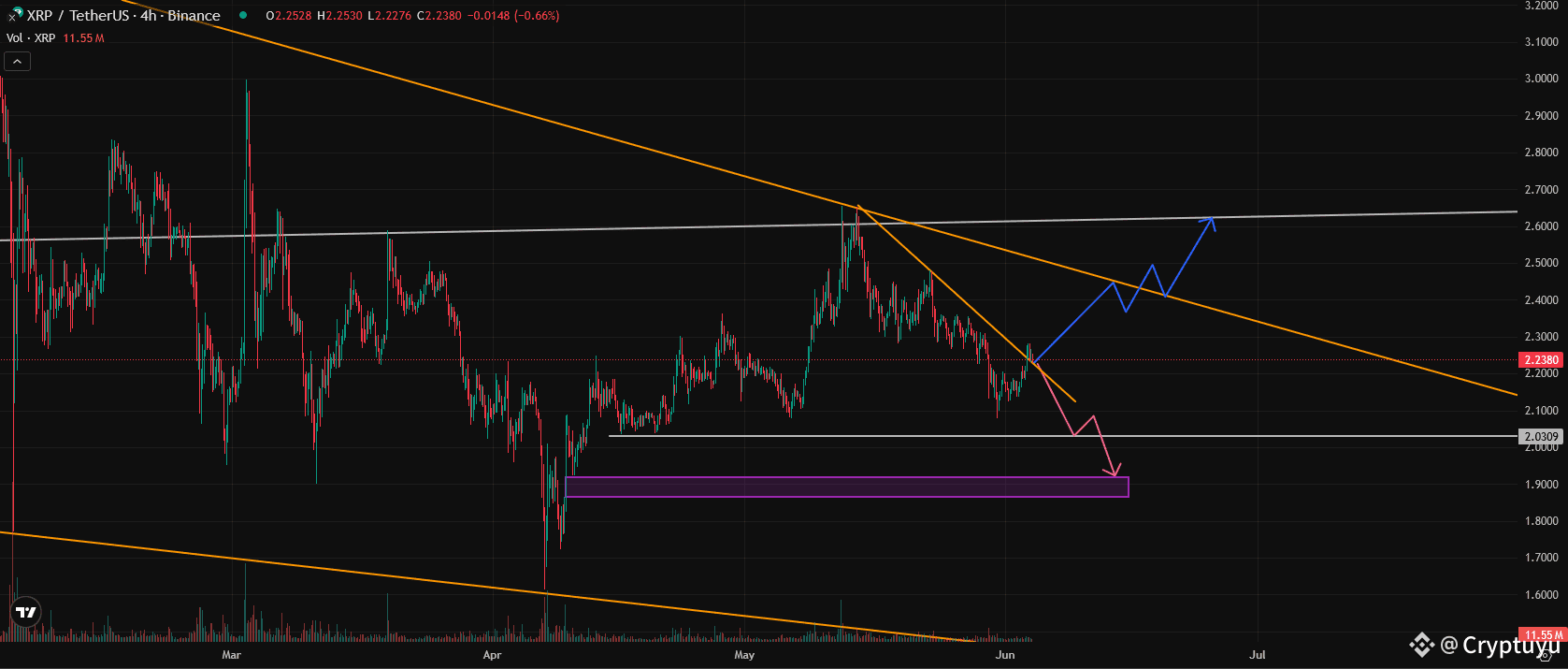 Blue route: XRP rushes to the upper resistance line of the downward channel, with a price of around $2.4. If there is momentum, it can look at $2.6 or even $2.8.