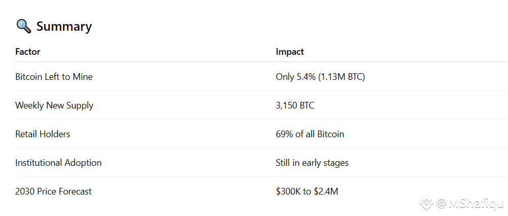 Out of the 21 million total Bitcoin supply, only 5.4% (about 1.13 million BTC) is left to be mined.