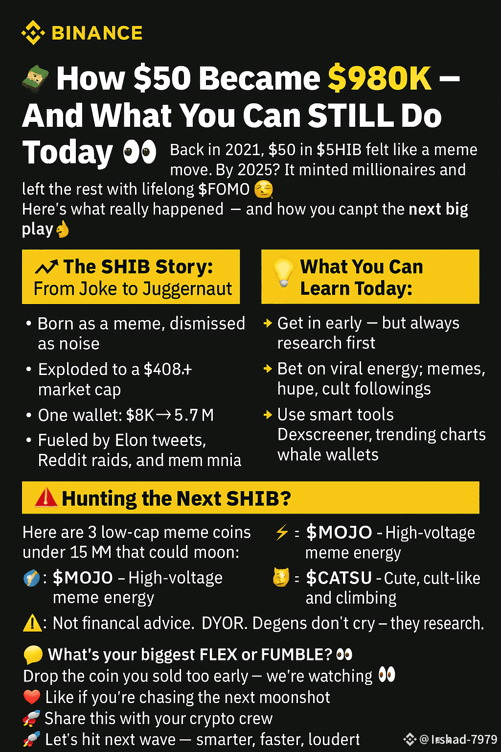 #BinanceSquare #Next10000x #MemeCoinSeason #CryptoAlpha #WhaleMoves2025