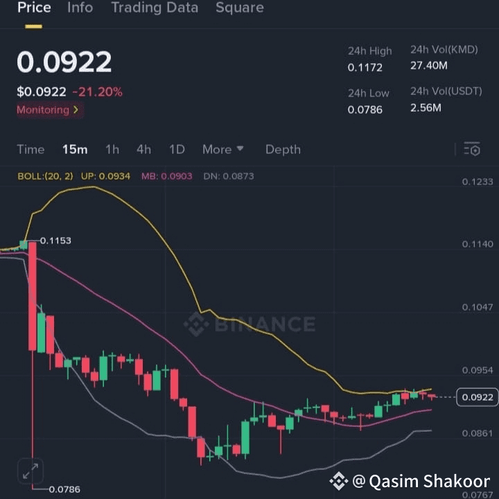 $KMD dropped sharply, touching a low of $0.0786 before finding support. Now it's showing early signs of a potential bounce — and volatility is heating up.