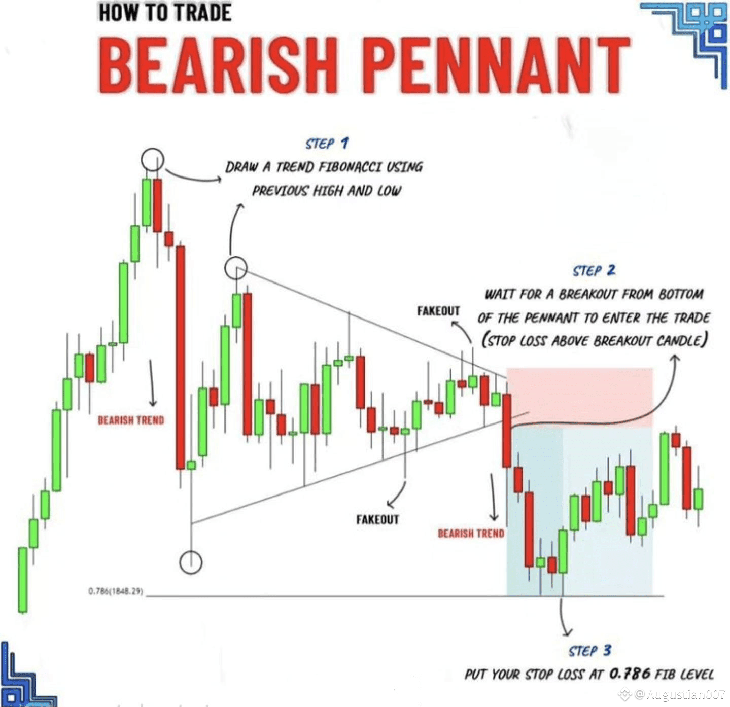 Jab price *pennant ke neeche ki line todta hai**, tab signal milta hai ki aur girne waala hai.