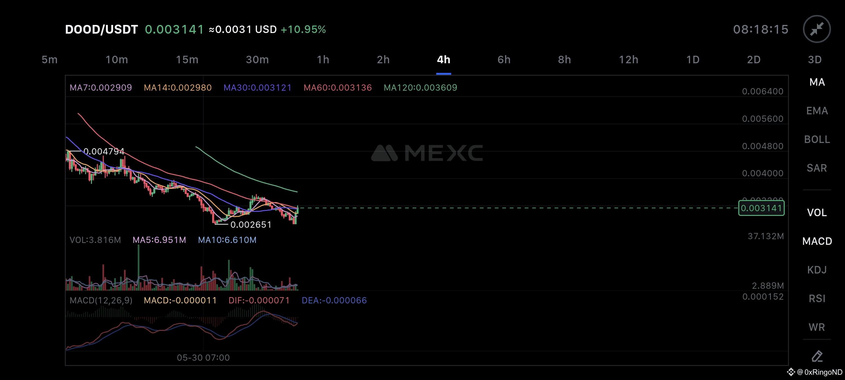 $DOOD Saya akan menganalisis chart DOOD/USDT pada timeframe 4 jam yang Anda berikan dan memberikan rekomendasi posisi entry berdasarkan tren saat ini.