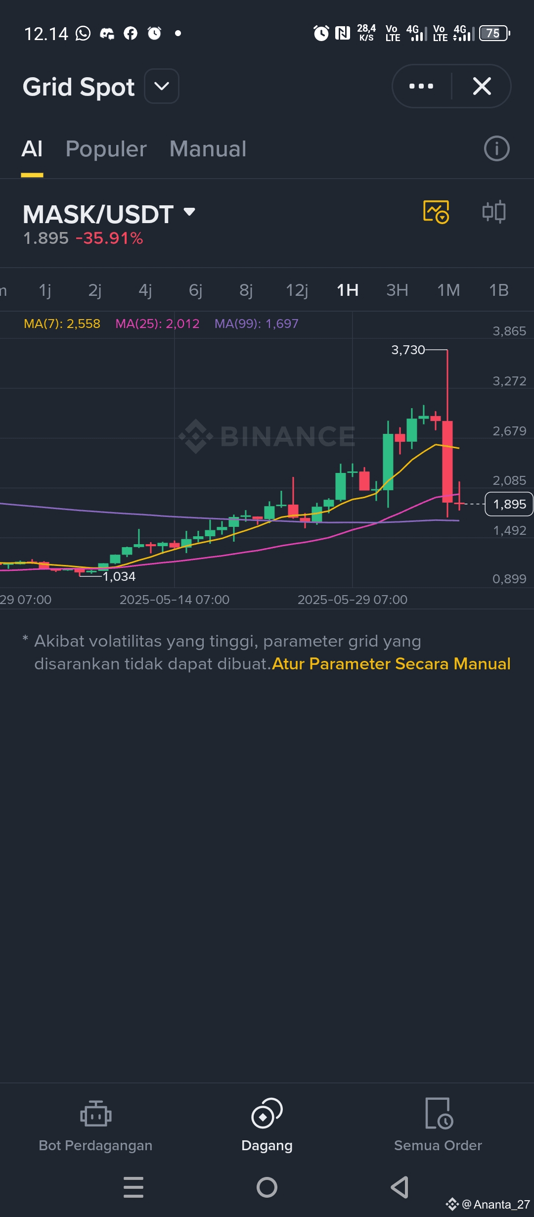 Harga $MASK terjun bebas tanpa hambatan😆dari $3.71 ke $1.70 hanya dalam beberapa jam — penurunan sekitar 47%!