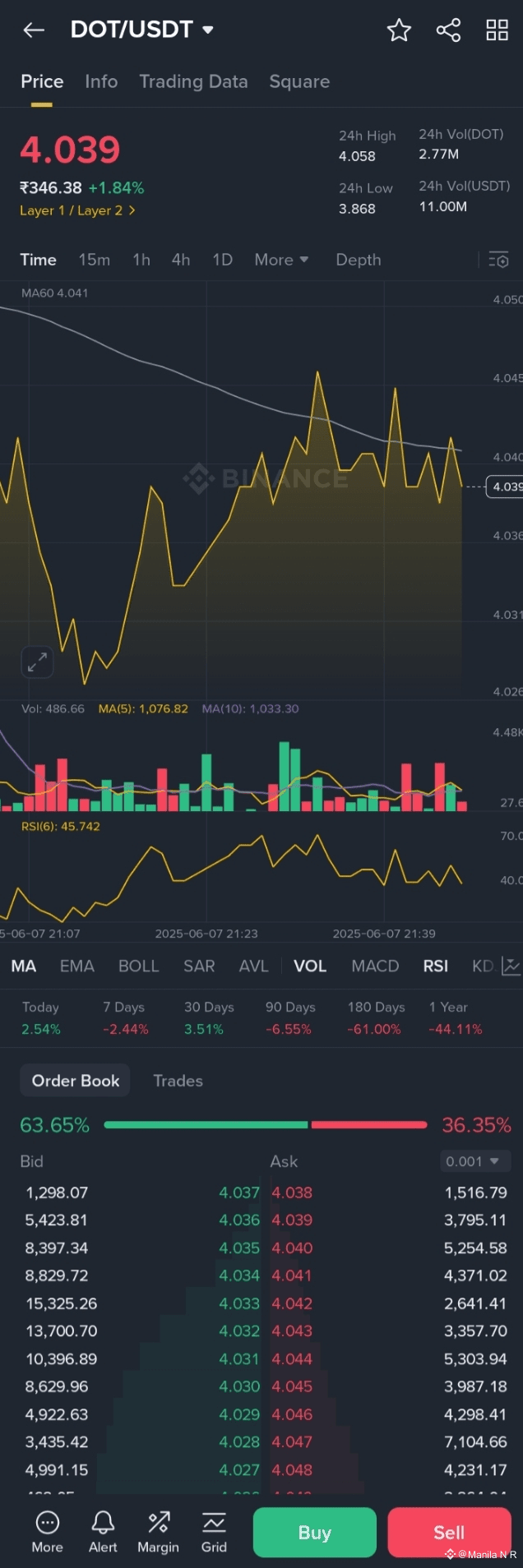 Polkadot ($DOT ) is currently trading at $4.04, reflecting a 1.76% increase over the past 24 hours.