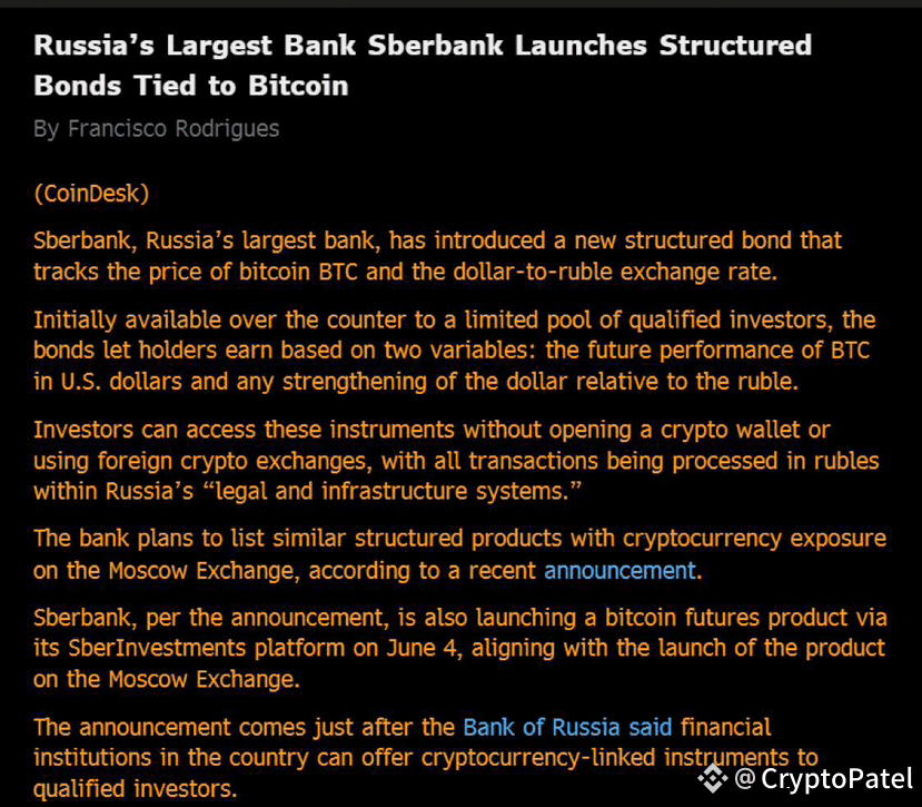 If the largest bank in Russia is embracing Bitcoin-linked bonds… what happens when the rest of the financial system follows?