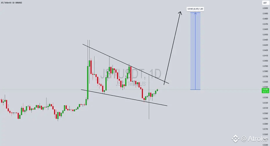 $JST демонструє сильні технічні сигнали на користь зростання, що поєднується з позитивною динамікою в екосистемі DeFi. Слідкуйте за ключовими рівнями та підтвердженням обсягу — це може стати гарною нагодою як для короткострокової, так і для середньострокової торгівлі.