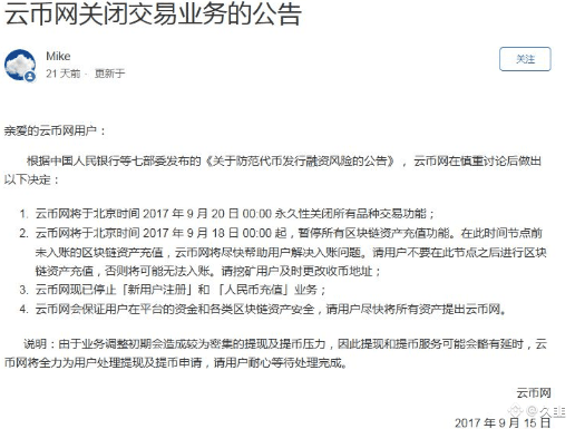 然而政策铁拳骤至,2017年9月 4 日,国内币圈最著名的事件——94 来了。