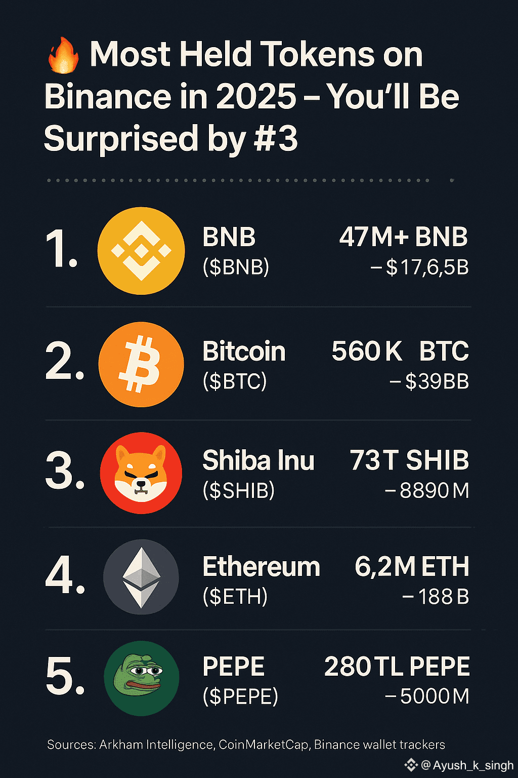 🔢 Top 5 Most Held Tokens on Binance (2025)