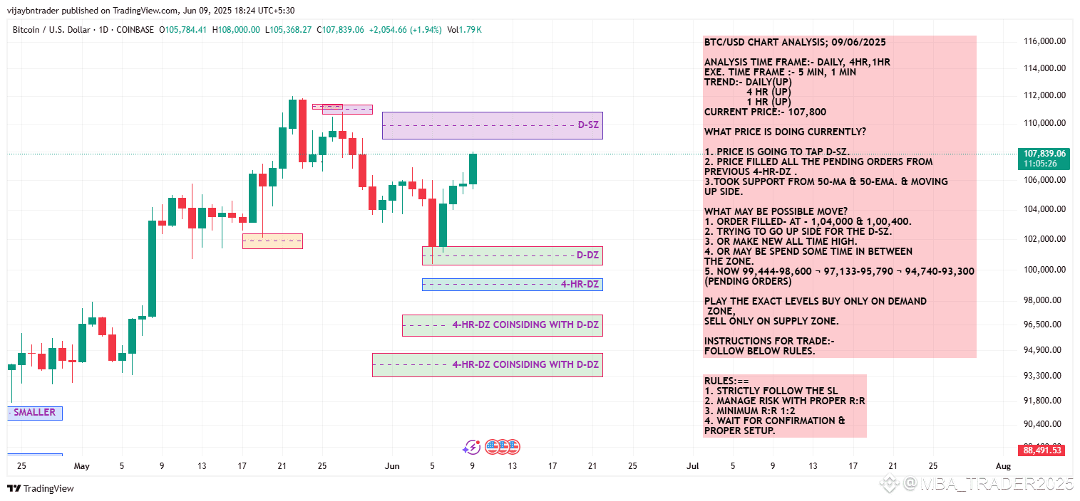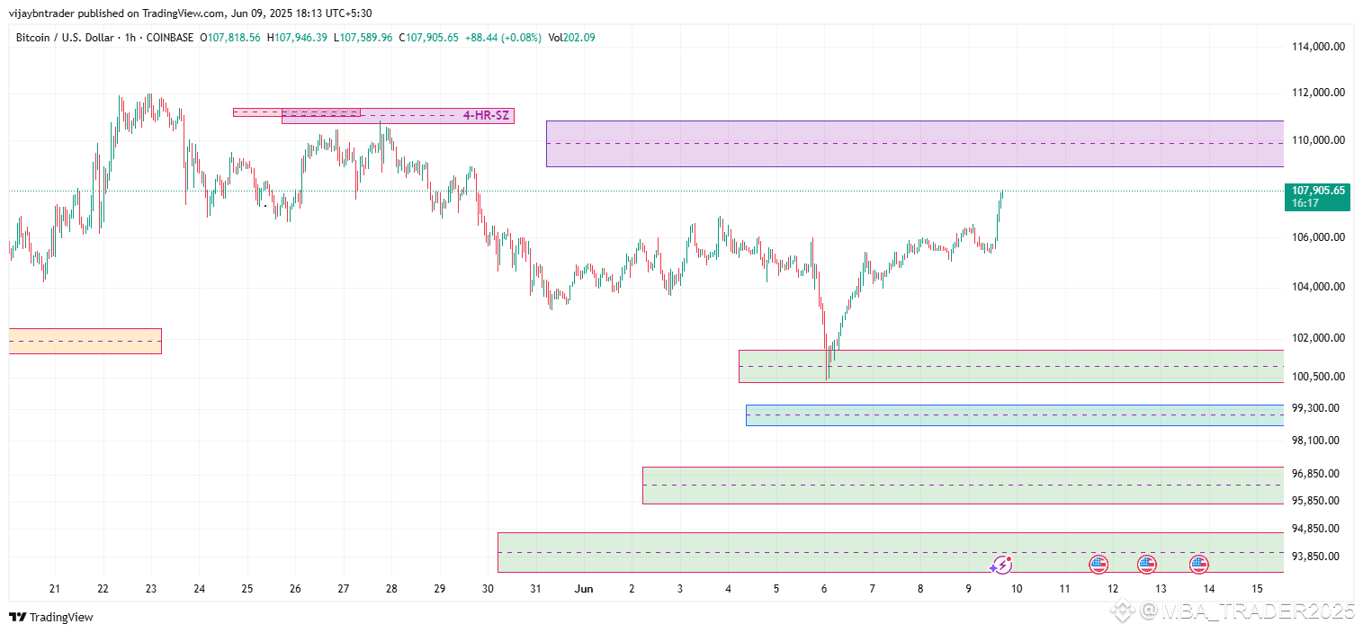> Bitcoin is showing strong bullish structure backed by institutional demand zones and moving average support. If 110K breaks, we may witness a breakout rally. Until then, stay cautious near supply.