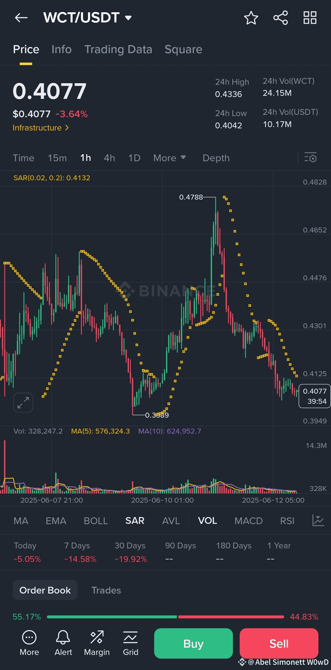 The 24-hour trading volume remains significantly high at approximately $62 million USDT, reflecting sustained market interest in $WCT . However, a crucial observation is the decline in volume during the recent price dip on the 1-hour candles. This reduction in selling pressure, evidenced by lower volume during the downtrend, could imply that the bears are losing steam and a potential reversal or consolidation is on the horizon.