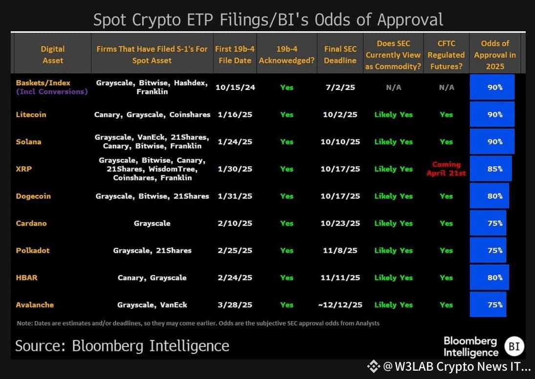 The experts specified that applications have also been filed with the US Securities and Exchange Commission (SEC) for ETFs for Litecoin (90% chance of approval), XRP (85%), Dogecoin (80%), Cardano, Polkadot, and Avalanche (75% each), as well as for SUI (60%). The review for TRON has not yet begun, with a deadline set for 2026.