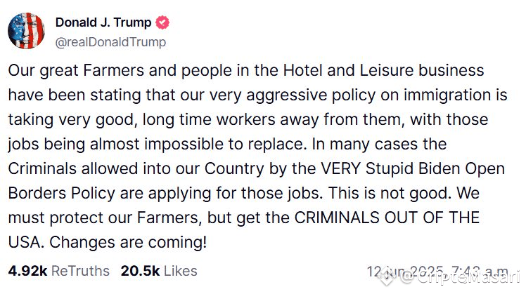 📉 “Nos estamos quedando sin muy buenos trabajadores de muchos años”, escribió en Truth Social. Muchos de esos empleos han sido históricamente ocupados por inmigrantes sin papeles.