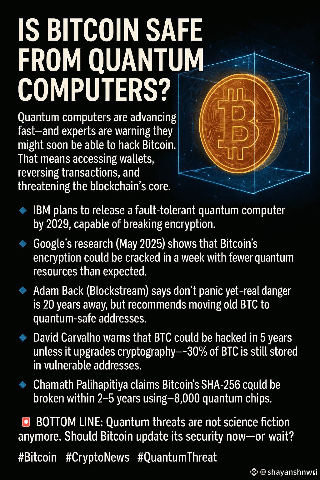 🚨 Bottom line: Quantum threats are not science fiction anymore. Should Bitcoin update its security now—or wait?
