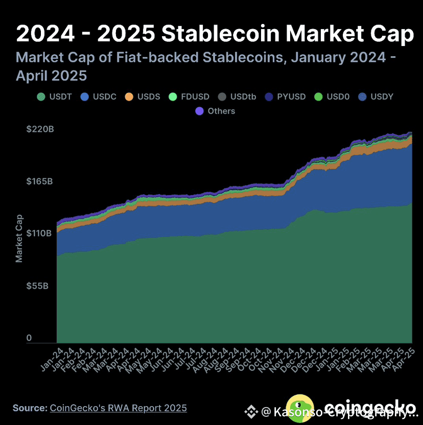 1. Fiat-Backed Stablecoin Market Cap Climbed by +$97B Between 2024 - 2025, Ending April at a New All-Time High of $Fiat-backed stablecoins climbed by +76% between 2024 - 2025, minting an additional +$97 billion, reaching an all-time high of $224.9 billion amidst the crypto bull cycle.