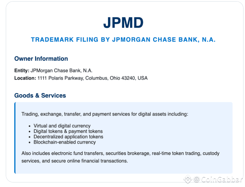 A fresh trademark filing by JP Morgan for "JPMD" is sparking rumors of a potential stablecoin or tokenized dollar initiative. While the details remain undisclosed, it's a clear signal the bank is diving deeper into crypto asset infrastructure.