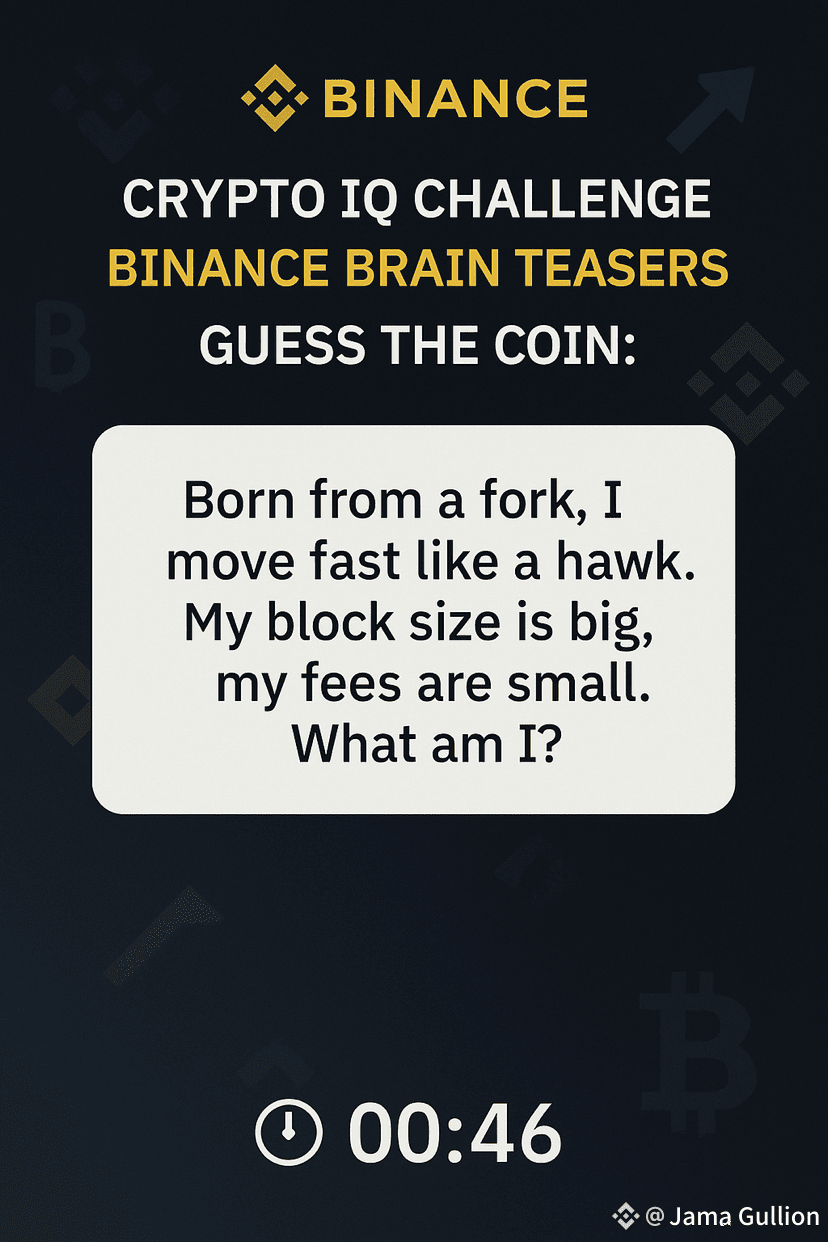 🧩 “Born from a fork, I move fast like a hawk. My block size is big, my fees are small. What am I?”