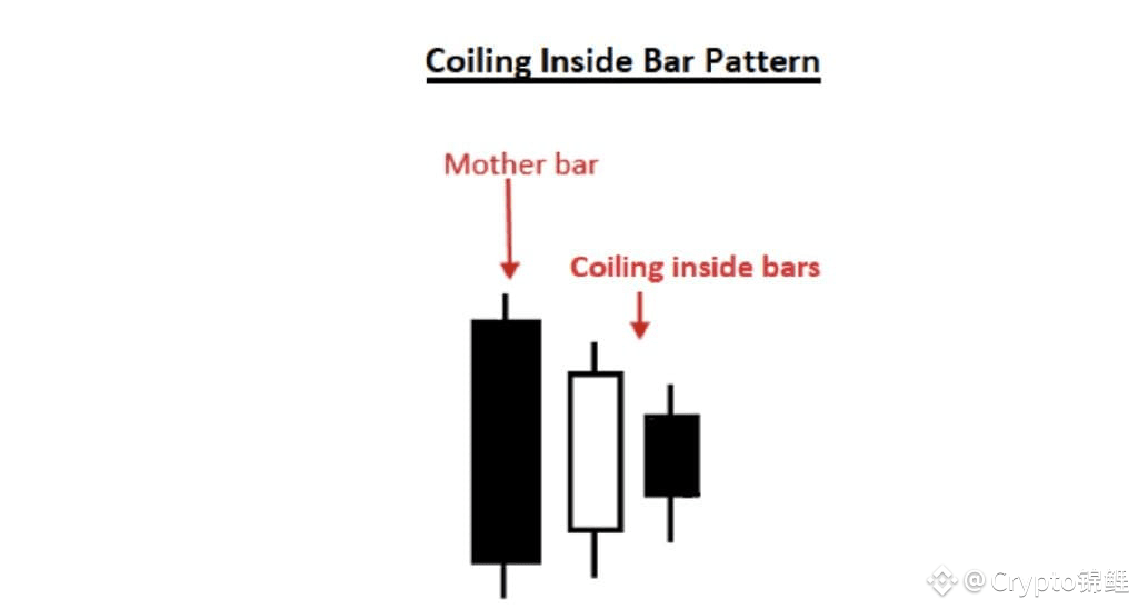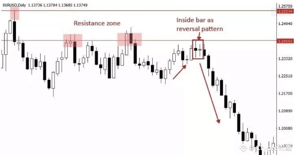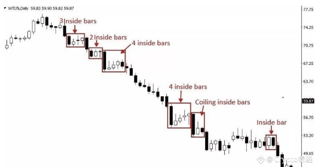 1. 盘绕inside bar形态通常指向一次重大的价格突破,因为市场在盘绕时积蓄了能量,这种能量导致强突破的形成:
