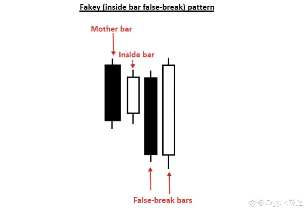 这是指在一个inside bar形态后,价格出现虚假突破,往一个方向变化后迅速反转,让一部分人被套。
