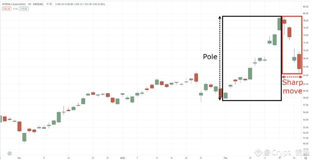 尽管如此,牛市旗形由两部分构成,其中,杆子是最为显著的部分,如下图所示。
