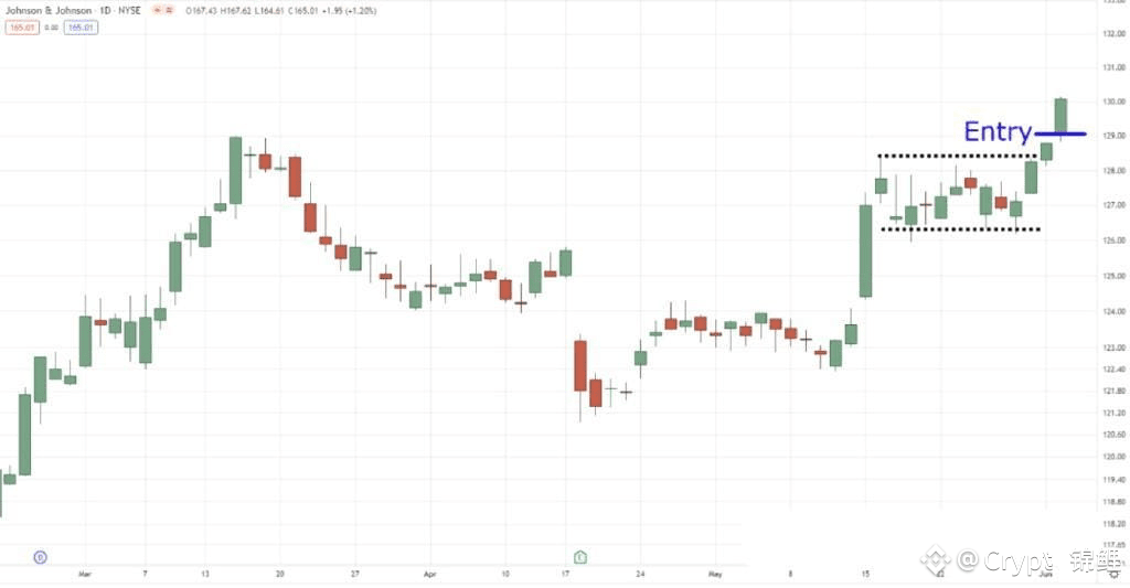 JNJ每日时间框架上的牛市旗帜形态入场触发器