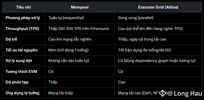 Để hiểu rõ hơn sự khác biệt giữa mempool và Executor Grid, hãy xem xét các khía cạnh kỹ thuật cụ thể: