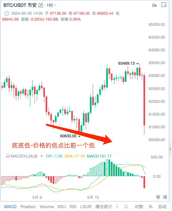 但是MACD却形成底底高,这意味着买方的动能开始介入了,价格下跌动能逐渐减弱。