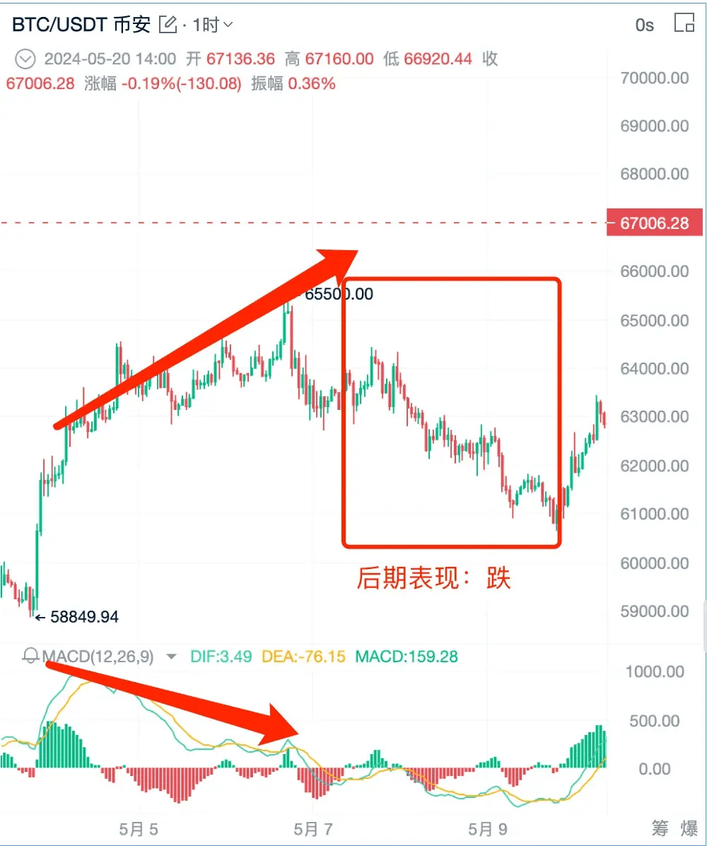 当价格形成顶顶高,MACD却形成顶顶低,这就是顶背离。看到价格形成顶顶高,但是MACD却形成顶顶低,这就是顶背离。价格的趋势大概率会转变向下。